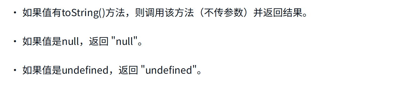 如果不确定一个值是不是null或undefined,可以使用String()转型函数,它始终会返回表示相应类型值的字符串。