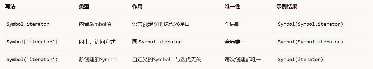 这些内置符号最重要的用途之一是重新定义它们,从而改变原生结构的行为。但值得注意的是,普通symbol键和内置的symbol功能是不同的两套机制,普通symbol作为一个唯一的键存在,而内置symbol实则是一个特殊的协议接口,而这个功能搭载在symbol特性上,利用symbol的唯一性,正好不会引发任何冲突。