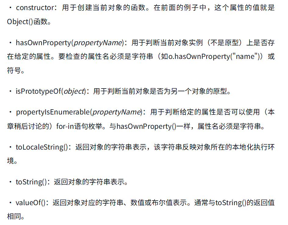 每个Object实例都有如下属性和方法。